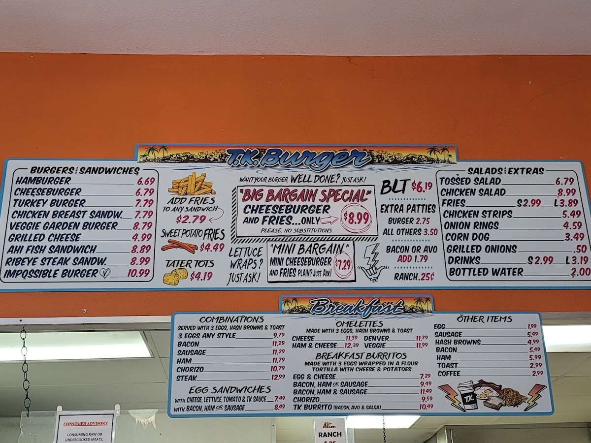 The menu at Tk Burgers in Santa Ana offers a satisfying selection of classic American fast food, perfect for anyone craving a hearty meal. One of the standout items is the Cheeseburger and Fries, a simple yet delicious combination that never fails to hit the spot. For those looking for a great deal, the Bargain Burger Combo provides a fulfilling meal at a budget-friendly price, making it a popular choice among regulars. Another favorite is the Beef Burger, which is perfect for those who enjoy a savory and juicy beef patty, served with all the classic toppings. Each of these items embodies the essence of what makes Tk Burgers a go-to destination for burger lovers: fresh ingredients, satisfying portions, and unbeatable flavors. Whether you're in the mood for a quick bite or a complete meal, Tk Burgers has something to please every palate.
